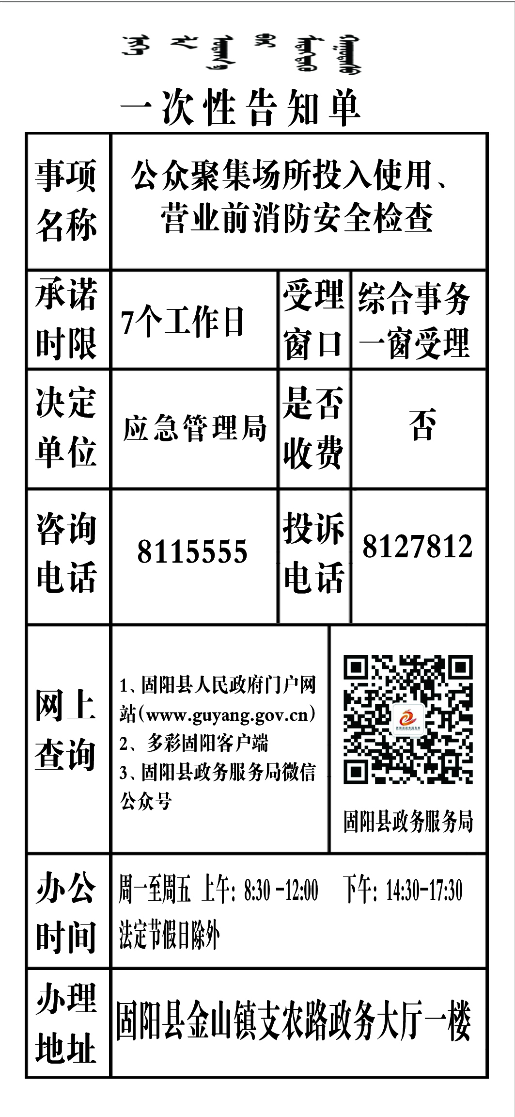政务服务事项告知单
