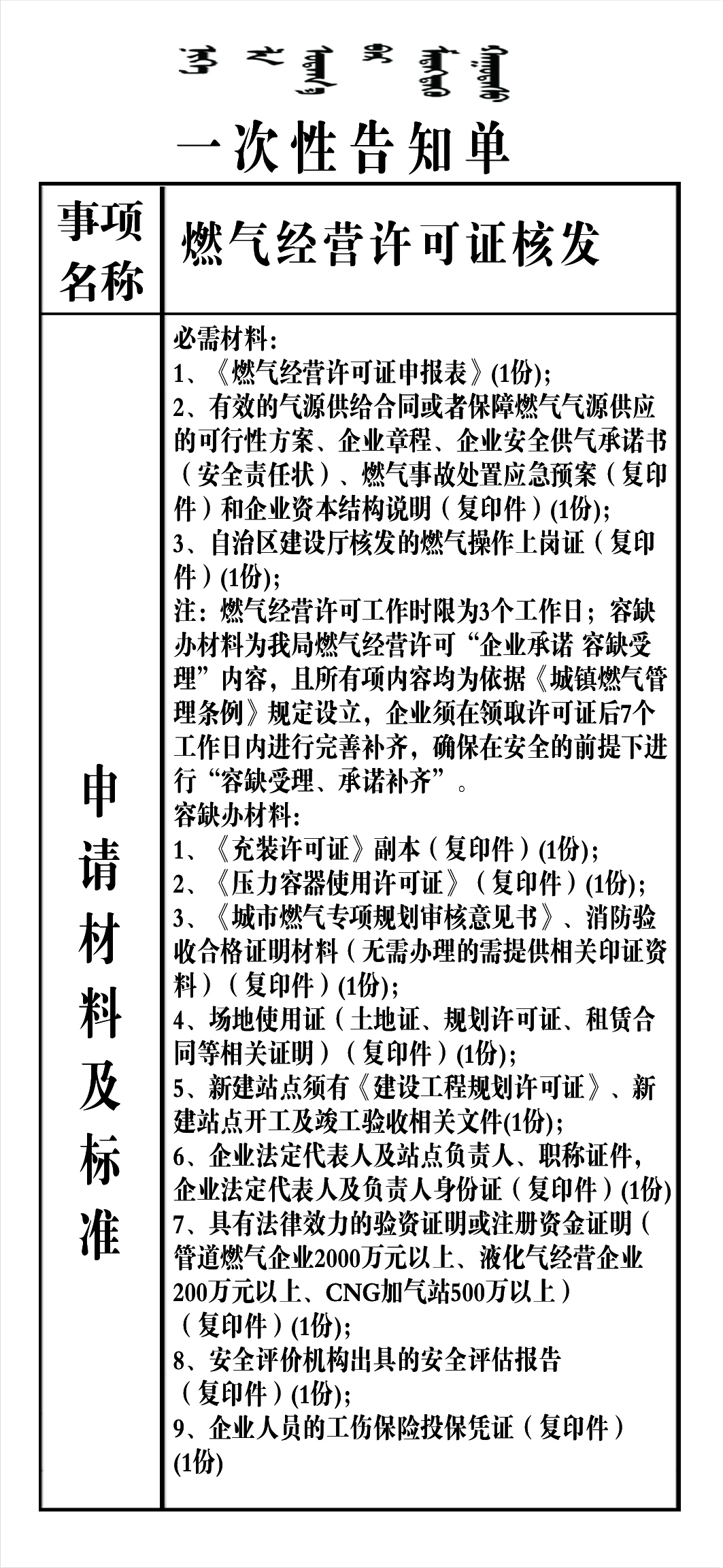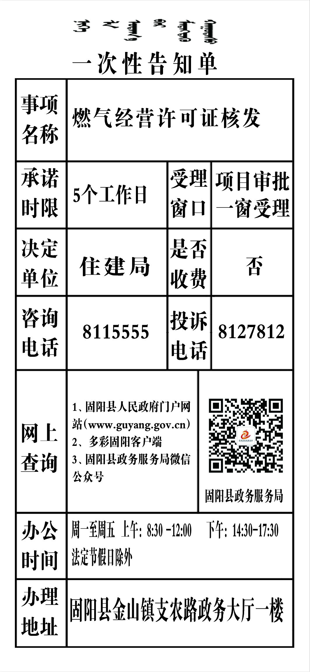 政务服务事项告知单