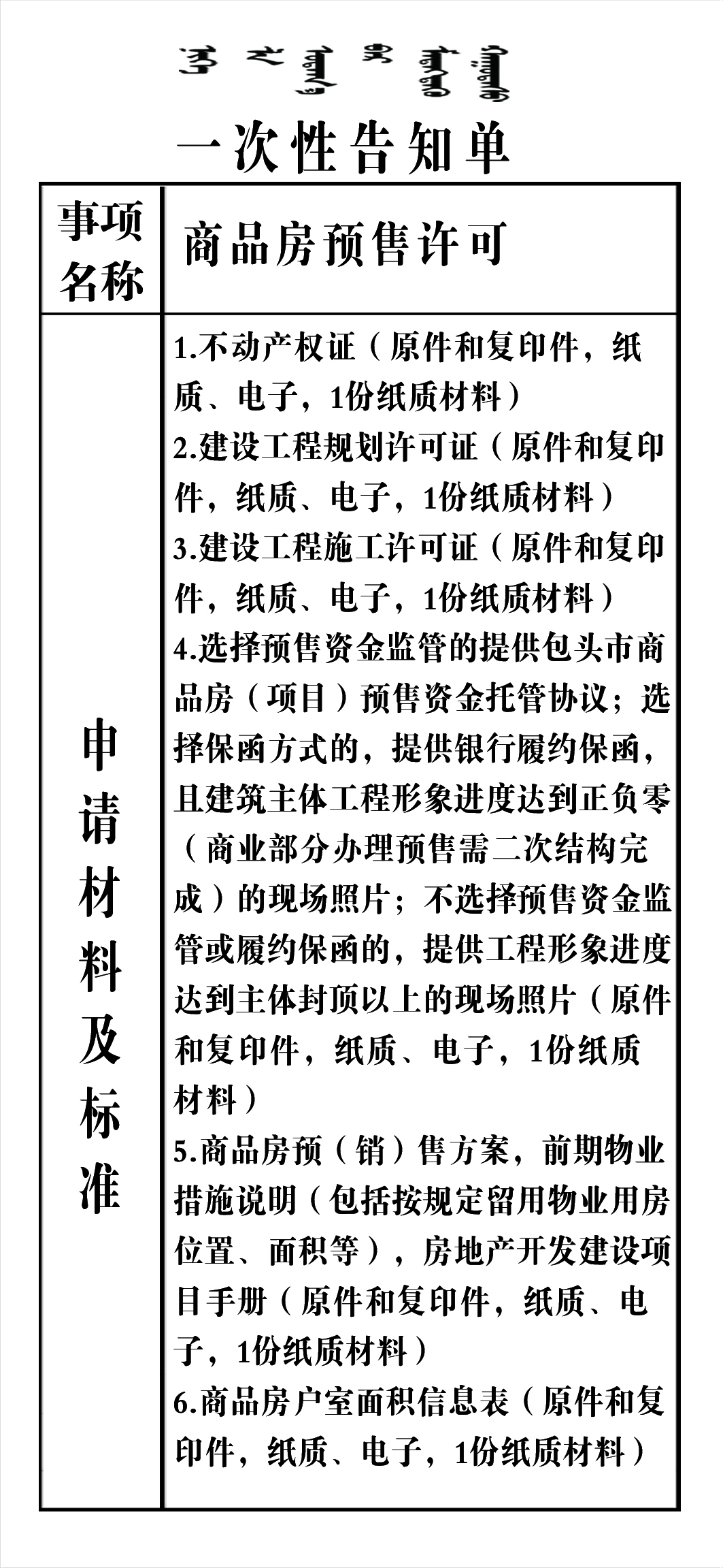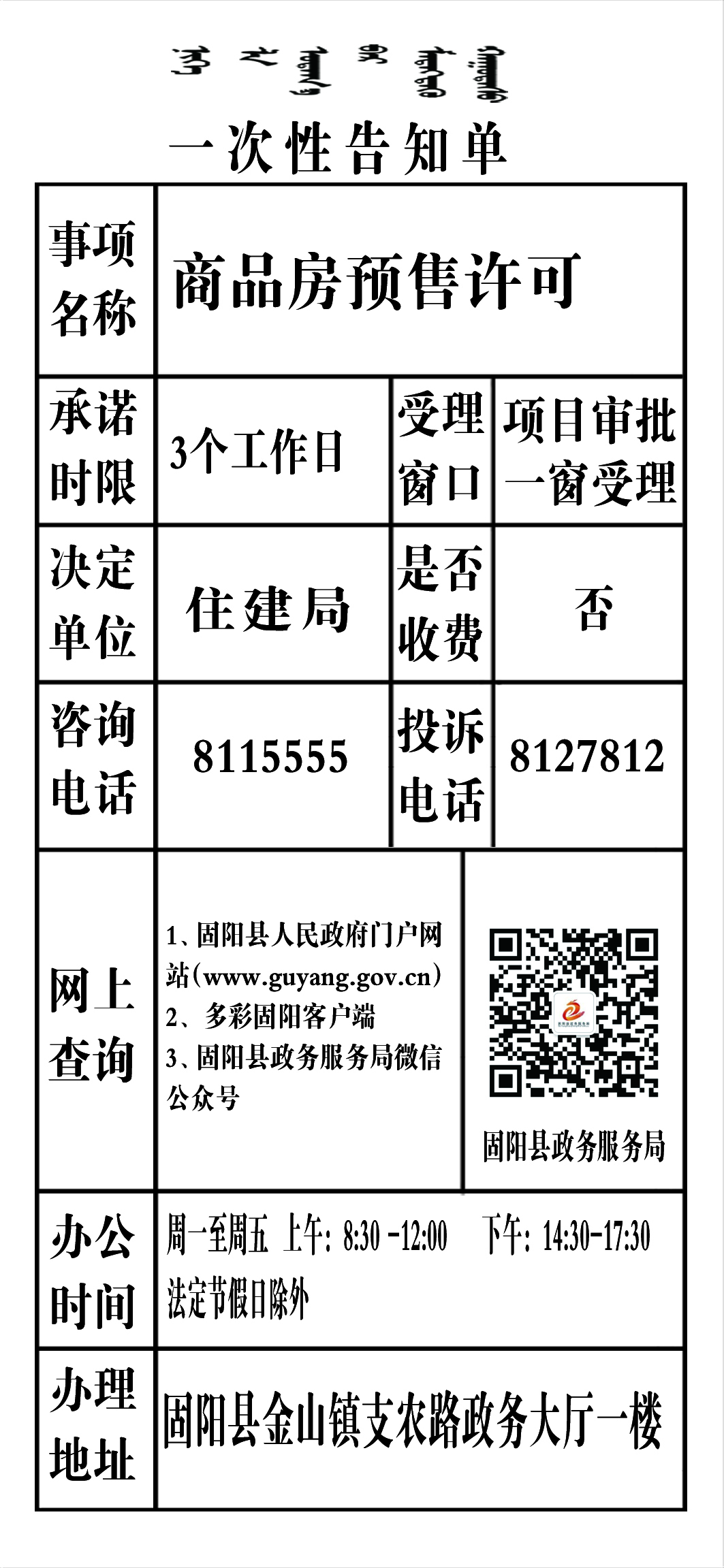 政务服务事项告知单