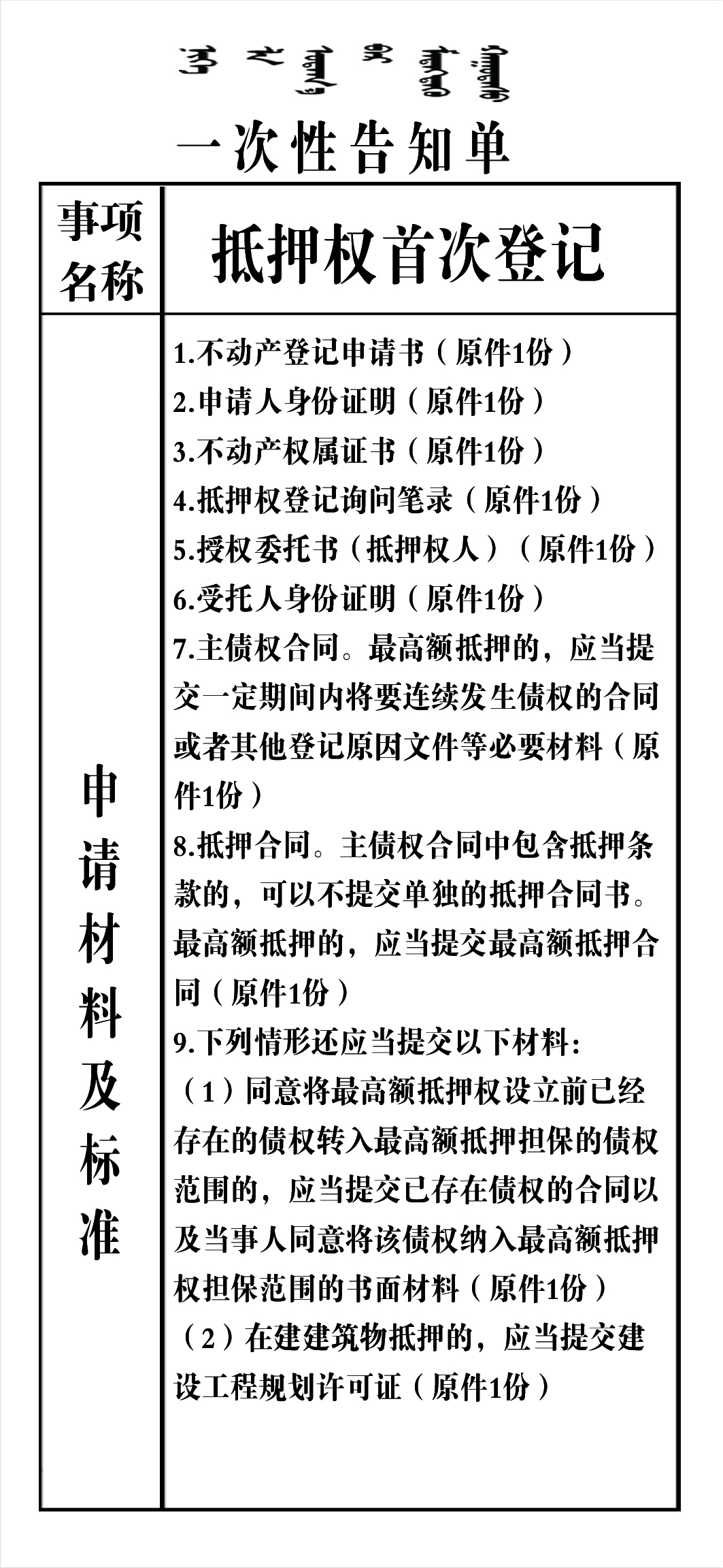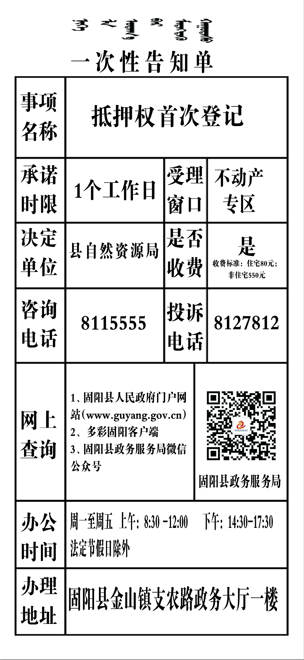政务服务事项告知单